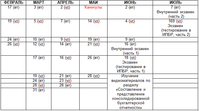 Предварительное расписание группы №167.1 по программе «Профессиональный бухгалтер организации, составляющей консолидированную финансовую отчетность» (300 ак.ч.)
