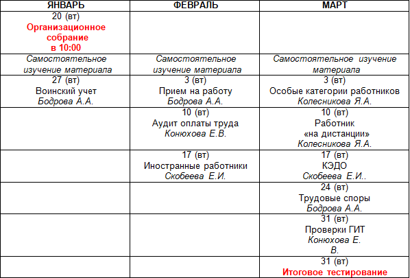 График занятий: 20 января 2026 г. в 10:00 состоится организационное онлайн-собрание.